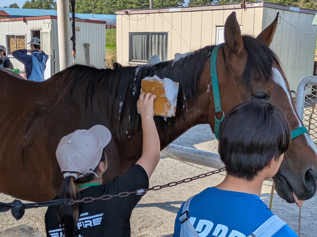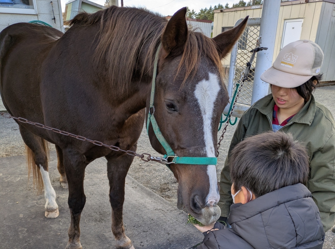 2017年から活動する「ひだかうまキッズ探検隊」との交流事業では、日高地域全体から応募のあった小学生21名を受け入れました。高校生自身が企画・運営し、うまクイズや乗馬、馬洗いなどを通じて馬の魅力を伝える受入れ活動を行っています。参加した児童は「高校生のお兄さんお姉さんが優しく教えてくれて楽しかった」と感想を話していました。