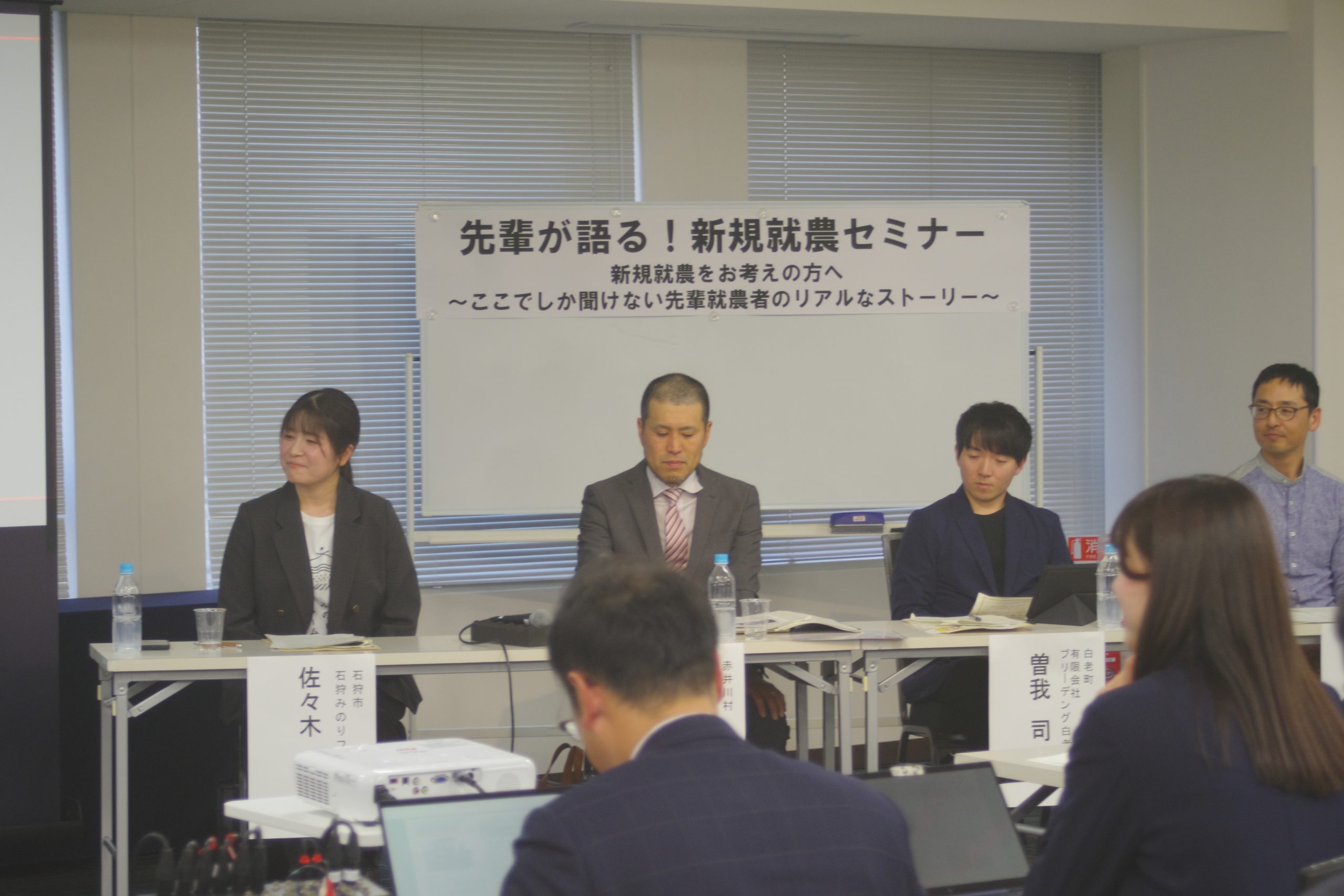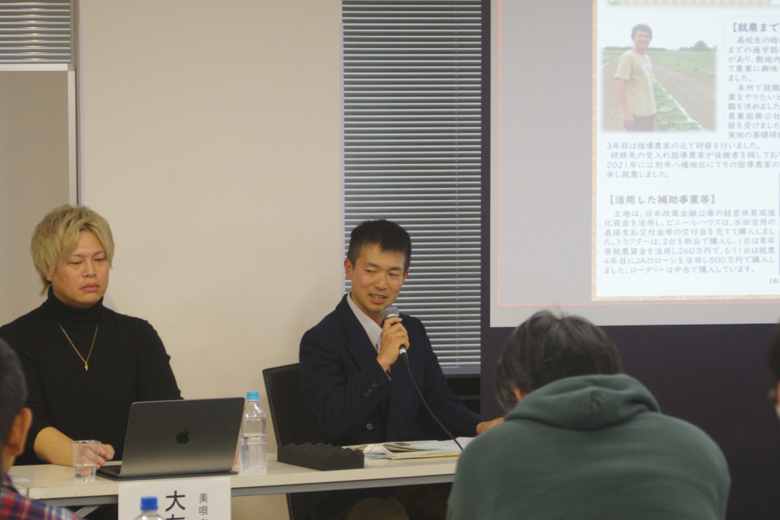 まったく農業と関わりのない職種からの就農はもちろん、親元へのUターン就農など、発表者の経歴も就農の仕方も様々で、色々な角度からの話が参加者に向けて発表された。