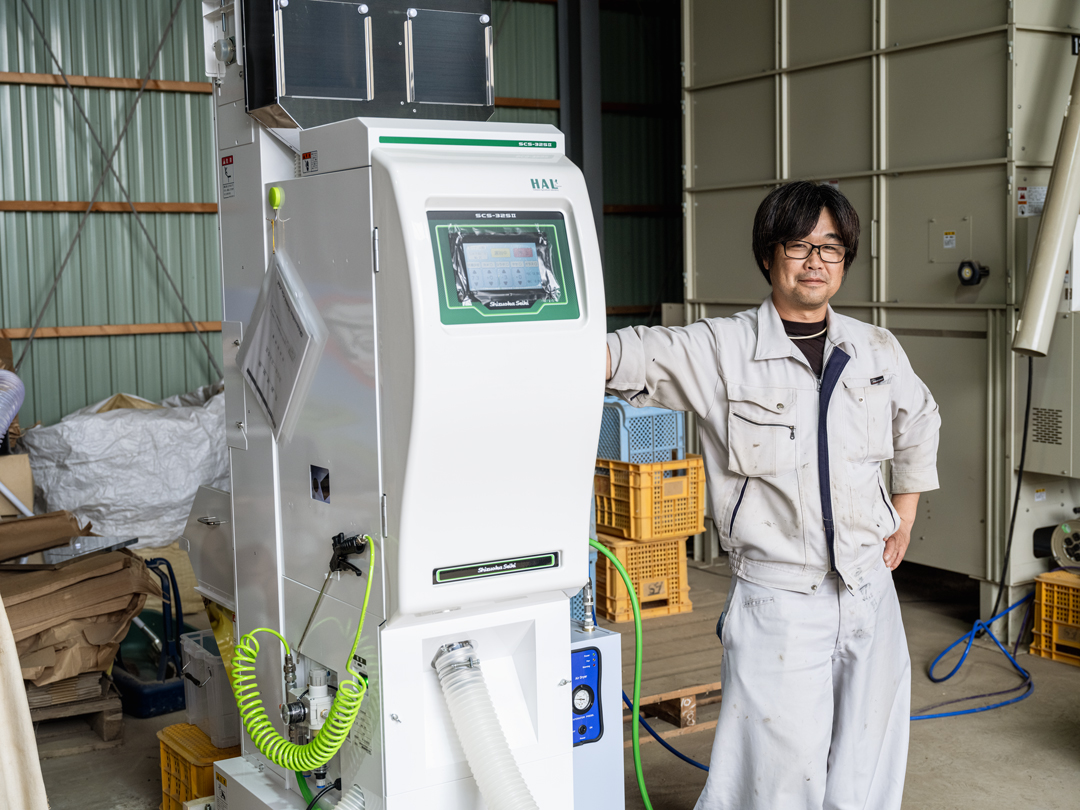 HALの文字が眩しい。識別精度が格段に上がって小石や砂つぶ、形の悪い米粒などが混入しなくなったという。