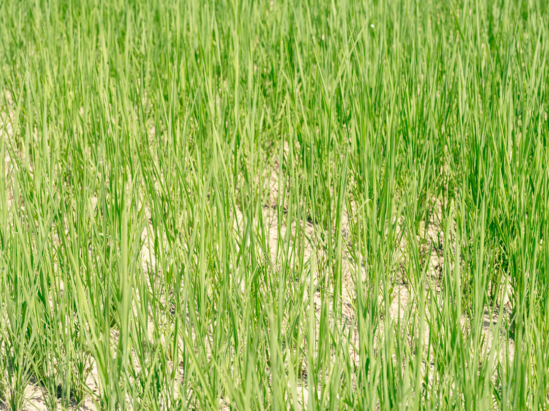水の張られていない土に生えている稲。思わず水をあげたくなるような、ちょっと痛々しい光景ですが、これが陸稲です。