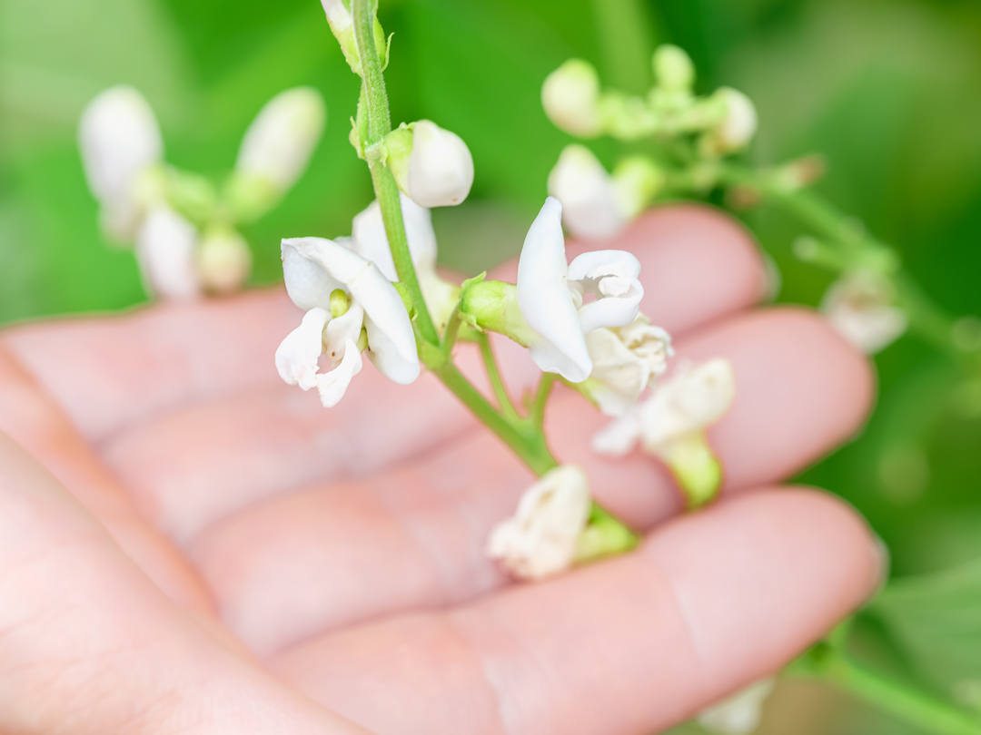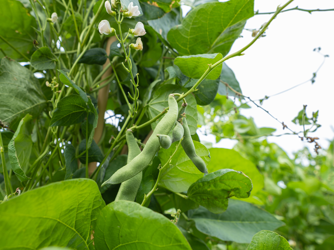 ●上野:豆科の植物は、葉や茎が育つ期間から花や実を作る成長期へと変わるタイミングで、30℃を超える暑い日が続くと、受粉がうまくいかなくて花が落ちやすくなります。また夜の気温が高くなるのもストレスになります。森谷ファームでは白花豆の花がもうそろそろ満開、畑一面が見事に白く彩られていますよ。