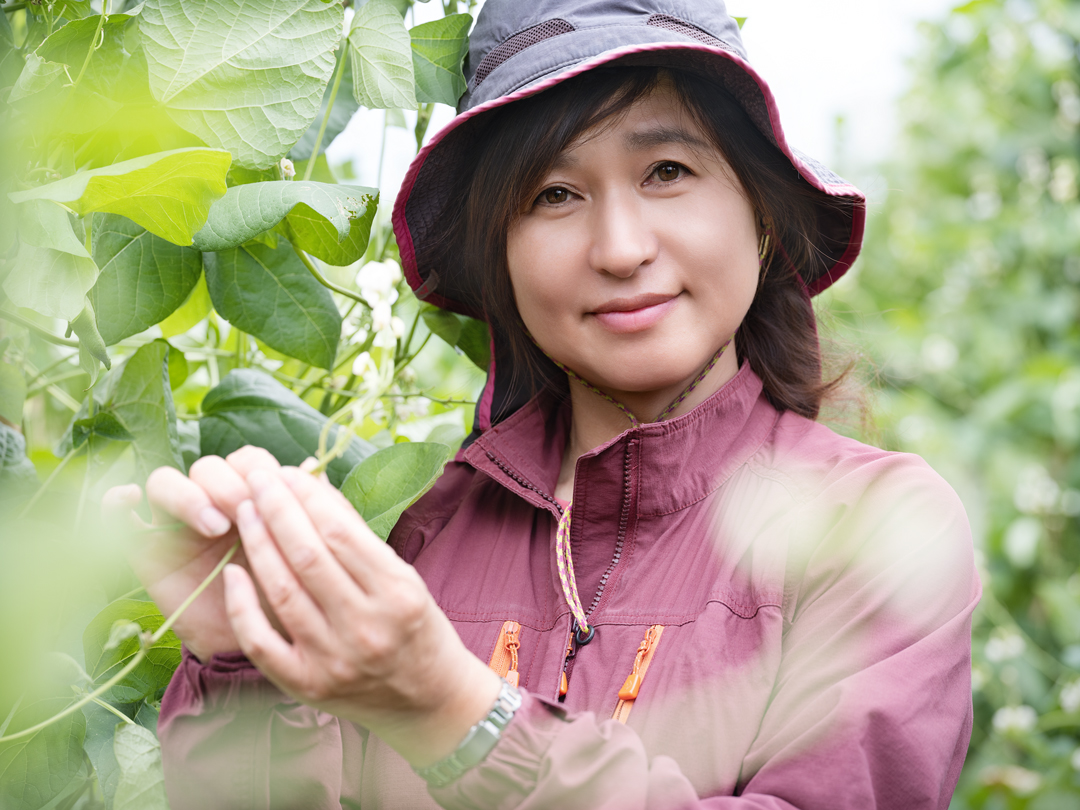 森谷ファーム代表の森谷裕美さん。留辺蘂町で最初に白花豆を栽培したのは森谷さんのおじいさん。白花豆への思い入れは人一倍強い。愛情を込めて育て、白花豆の伝統、文化、栽培技術、美味しさ、畑の風景の美しさを広め、守りたいといいます