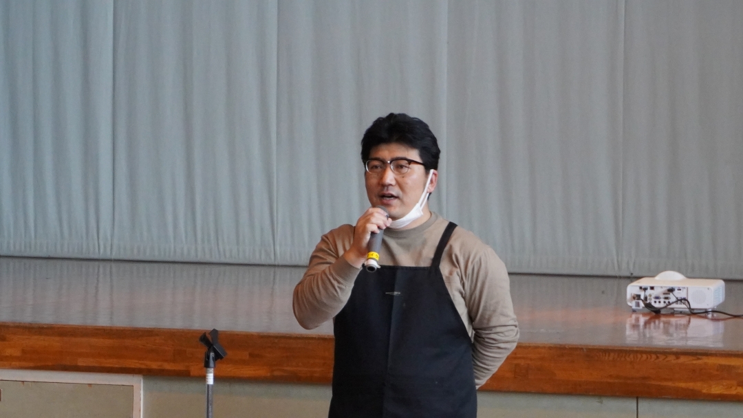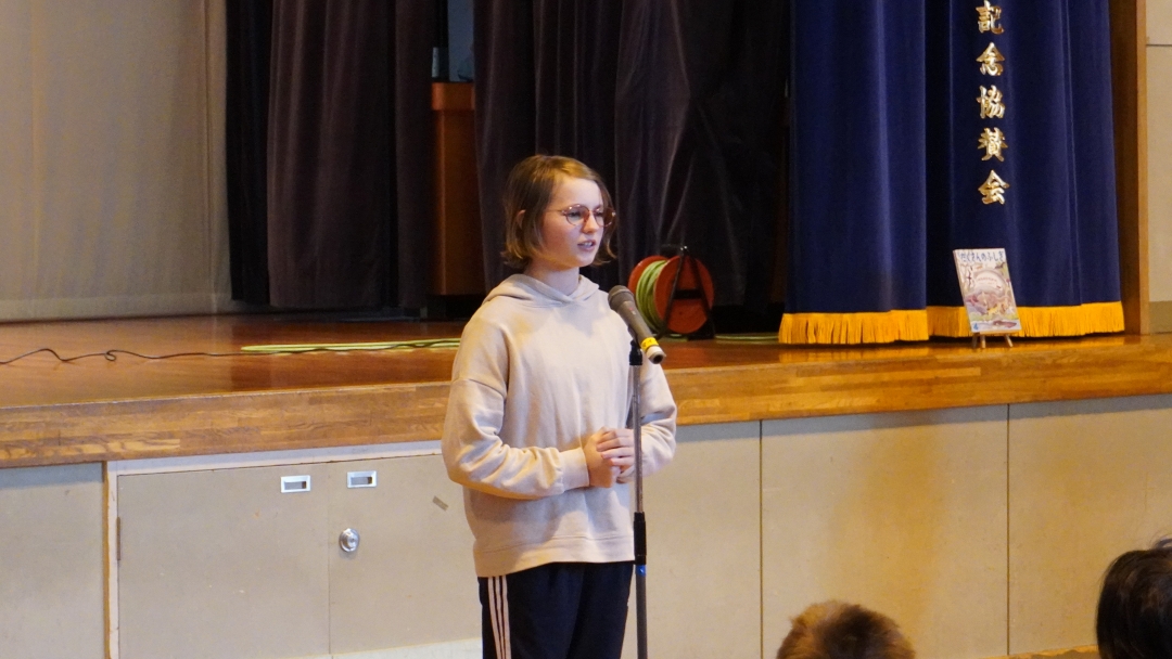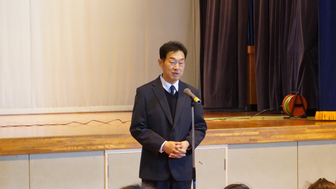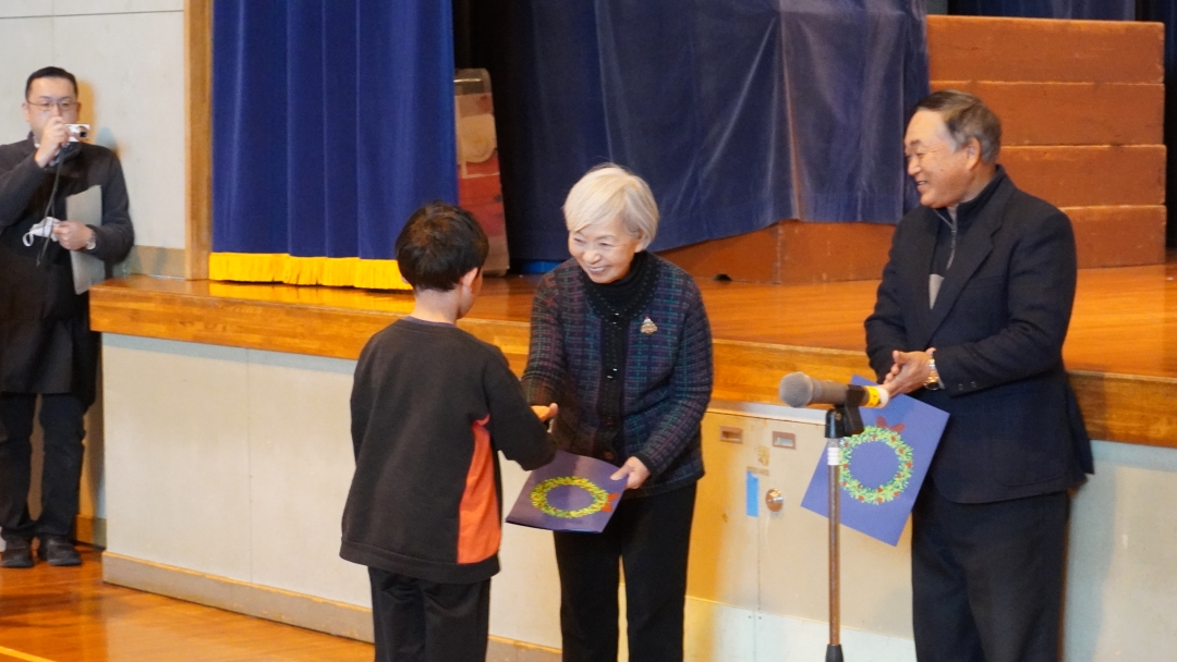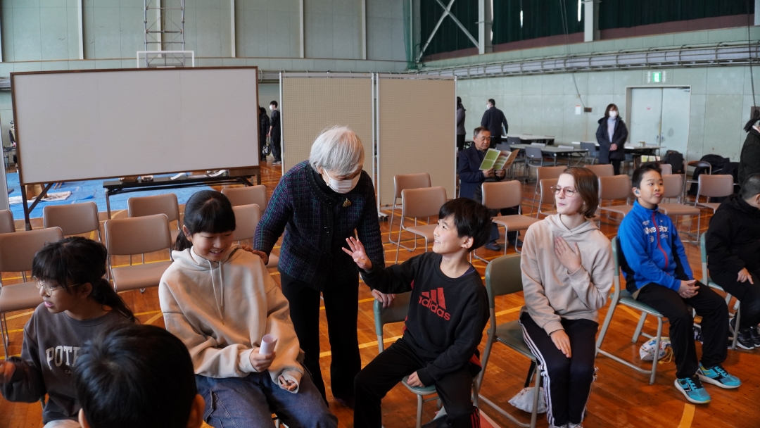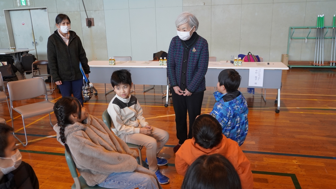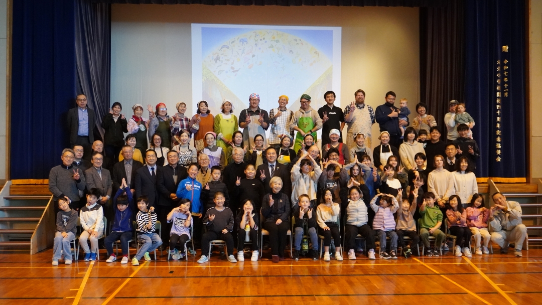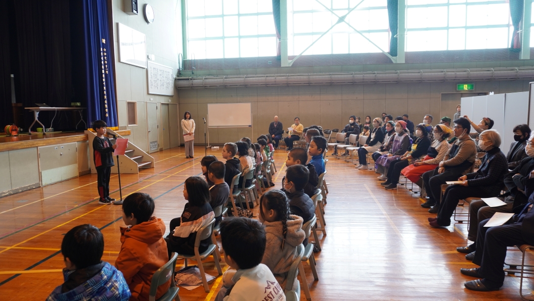 そして「みんなが住んでいるこの地域は自然も豊かでとても素敵な場所。みんなにとっては当たり前のことかもしれないが、世界では一緒に食べることができない人がいることも考えながら、この幸せなところでこれからも学び続けてほしい」と優しく語りかけ、児童や地域の皆さんは熱心に耳を傾けていました。